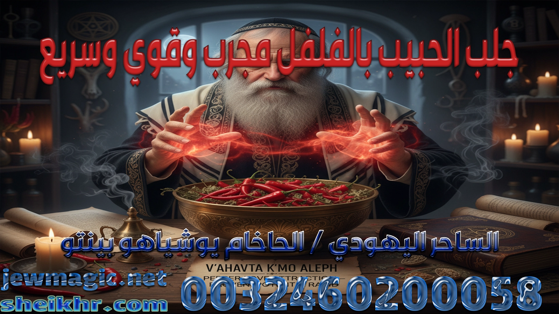 يسعدنا أن نعلن لسيادتكم أننا على إستعداد تام للكشف وعلاجات الحالات وقبول الاستفسارات علي رقم الخاص والوحيد للساحر اليهودي المغربي الحاخام “يوشياهو يوسف بينتو”
